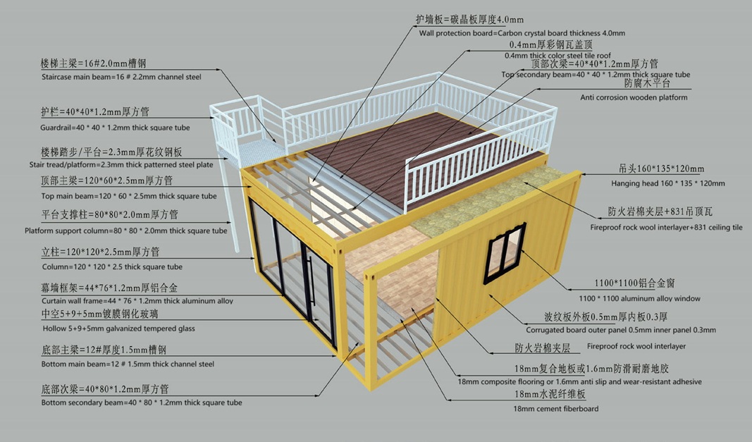 Thiết kế sáng tạo và tùy chỉnh: Bố cục nội thất (1 phòng ngủ, 2 phòng ngủ, 3 phòng ngủ), màu sắc bên ngoài, kiểu cửa/cửa sổ và vật liệu tường đều có thể được điều chỉnh theo thông số kỹ thuật của khách hàng.