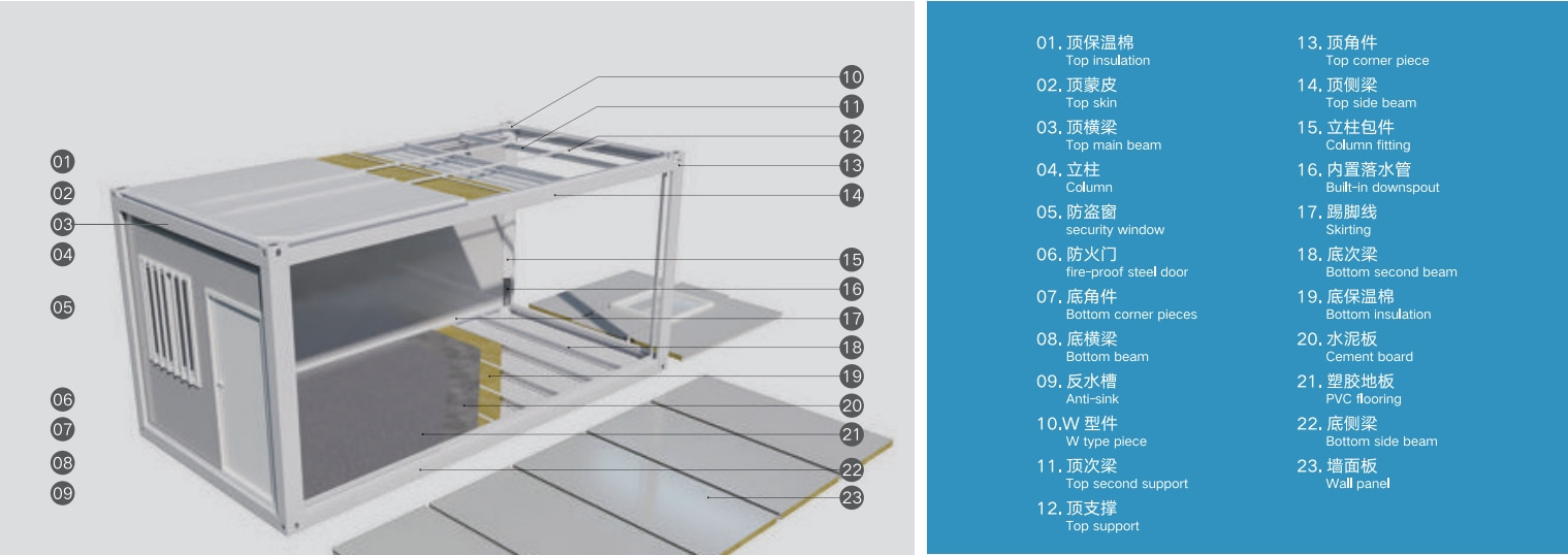 3. Có thể chia thành hộp lưu trú, hộp văn phòng, hộp hội nghị, hộp phòng tắm, hộp bếp, v.v. Cấu hình bên trong của các hộp chức năng khác nhau rất đa dạng.